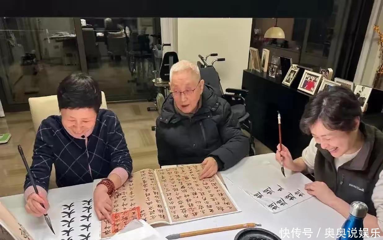 一家人搬进大平层后,吴越也经常陪伴父母。他们围在书桌上练字,84岁的父亲作为指导,时不时的提出几句点评,有说有笑的也很开心。